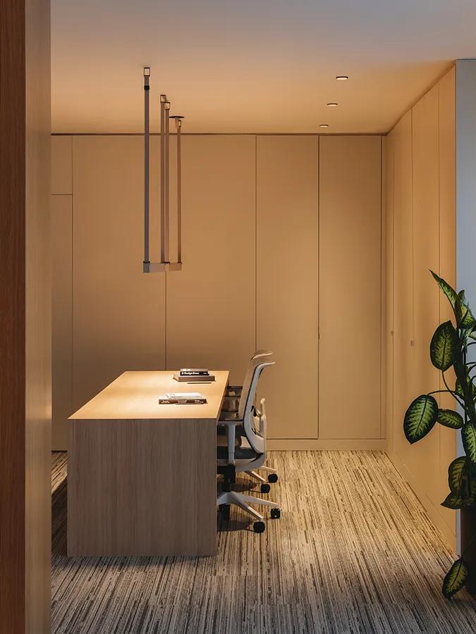 Thanks to its dynamic control and adjustable LED colour temperature, it allows the creation of personalised atmospheres full of nuances. A functional and refined complement, conceived for interior design projects seeking flexibility and visual comfort.