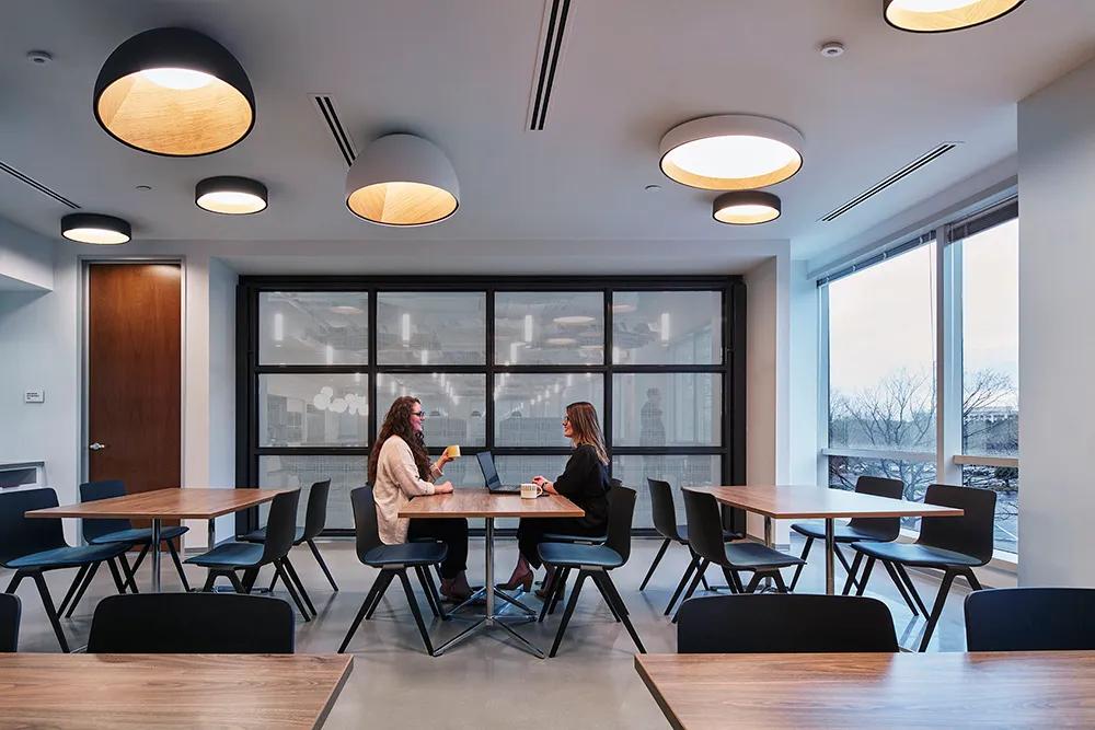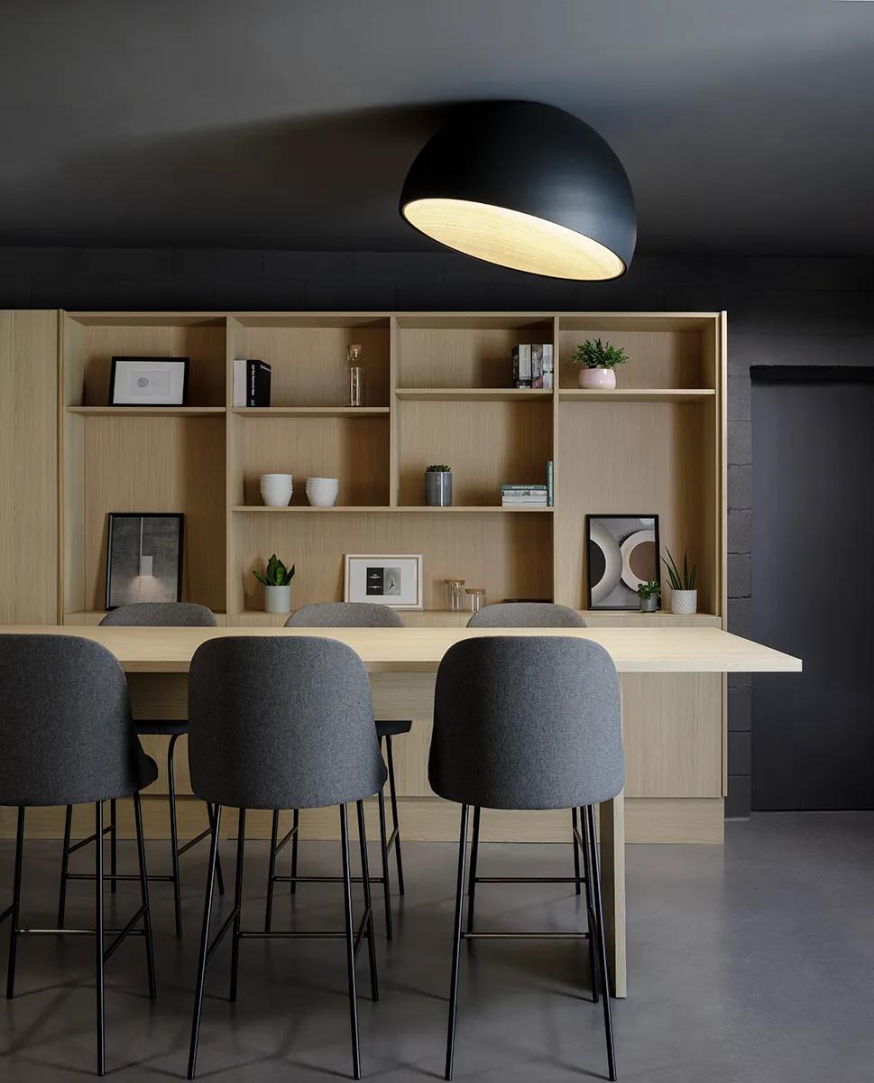 The Duo collection by Vibia stands out for its architectural design and its hemispherical and cylindrical form. Suspended from the ceiling, its refined and balanced structure adds a sculptural element to the space, merging clean lines and perfect proportions.