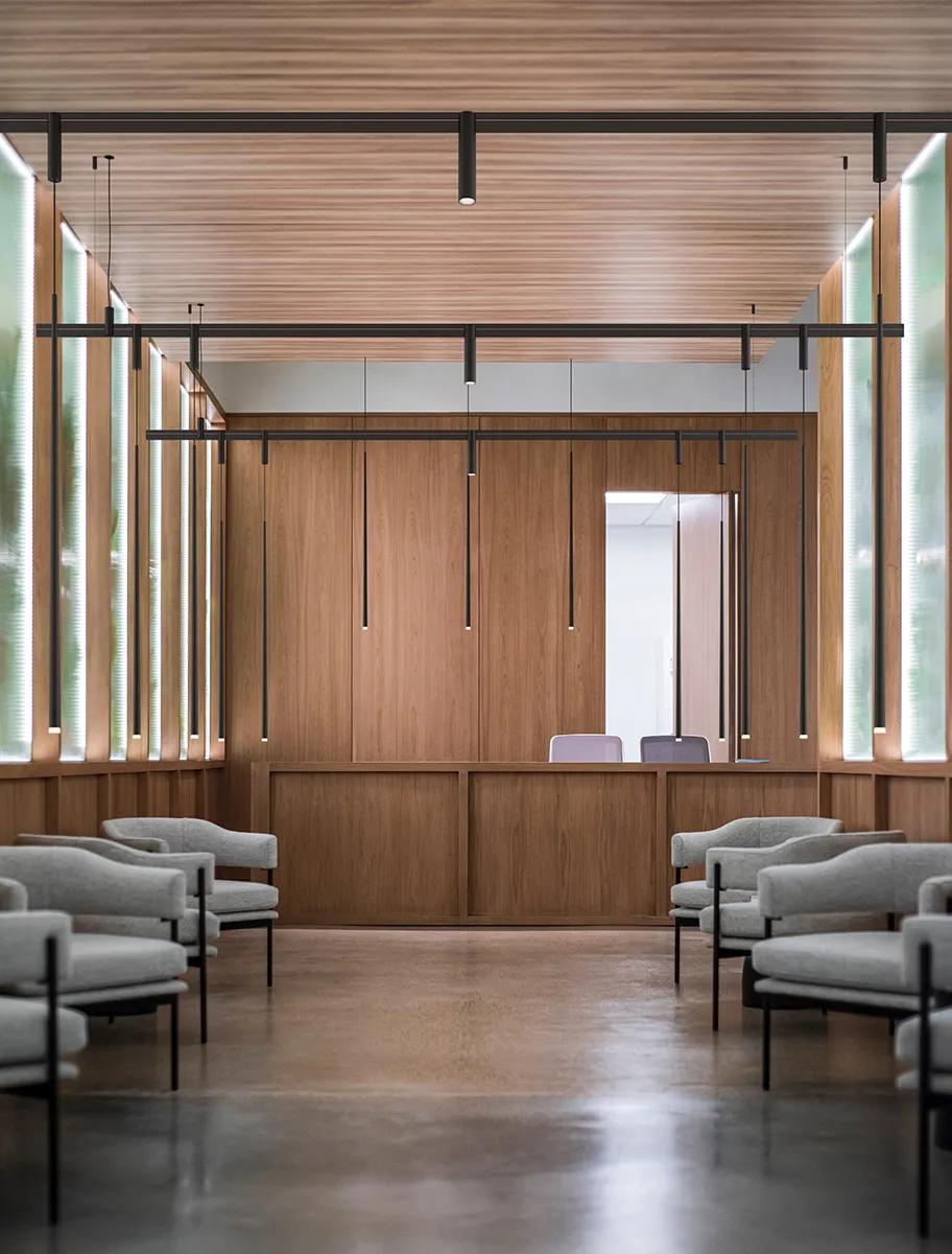 It allows professionals to experiment with different lighting typologies and levels of density, modelling a space by generating subtle gradients between soft and more accentuated light.