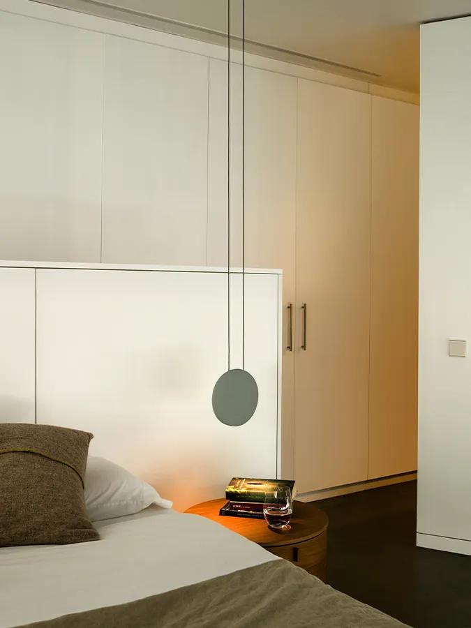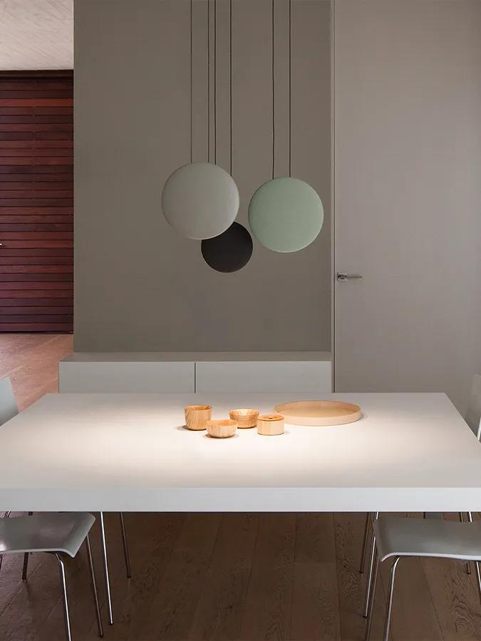 Vibia manufactures the Cosmos lamps in several finishes: matt lacquered dark brown, matt green, light grey and matt white. The use of LED technology makes the light source imperceptible, totally integrated within each of the elements.