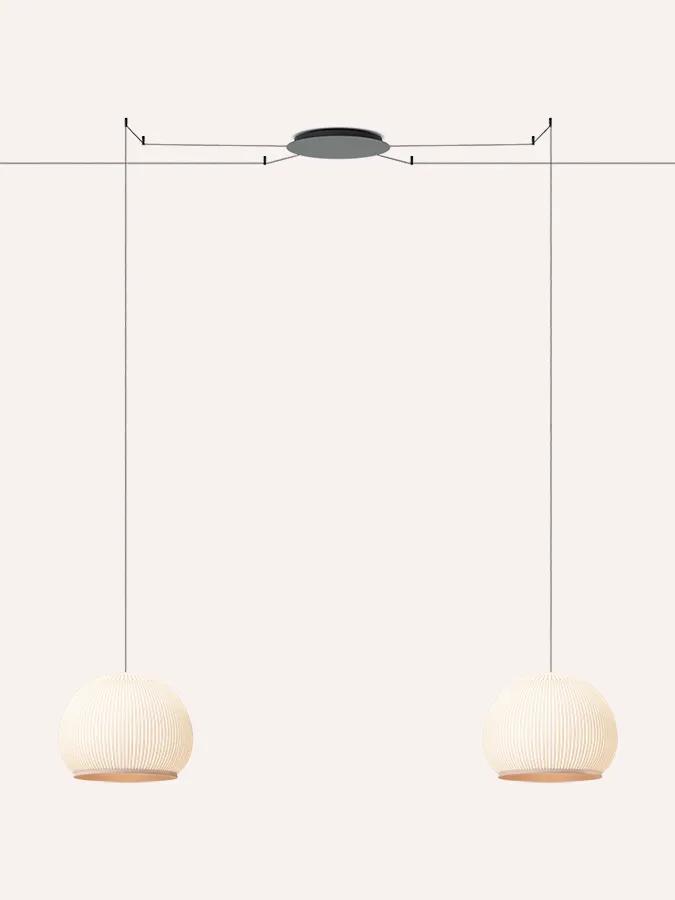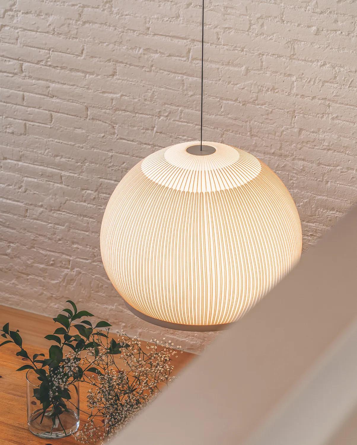 The bulk of each volume is covered in stretchy lycra, knitted into ribs using the plating technique. The darker ribs are opaque and tangible, while the space between the ribs is thinly knitted to transmit a diffuse, 360-degree glow. Easy installation and dimming capabilities make the Knit pendant lamp the perfect solution for professionals looking for quality indoor lighting with an abundance of charisma.