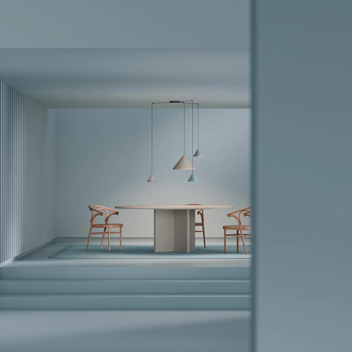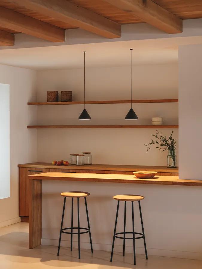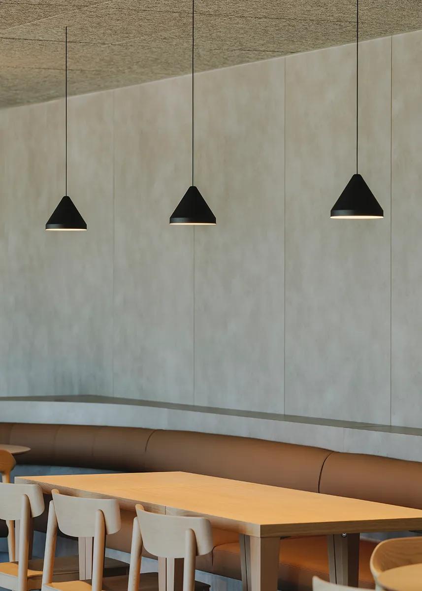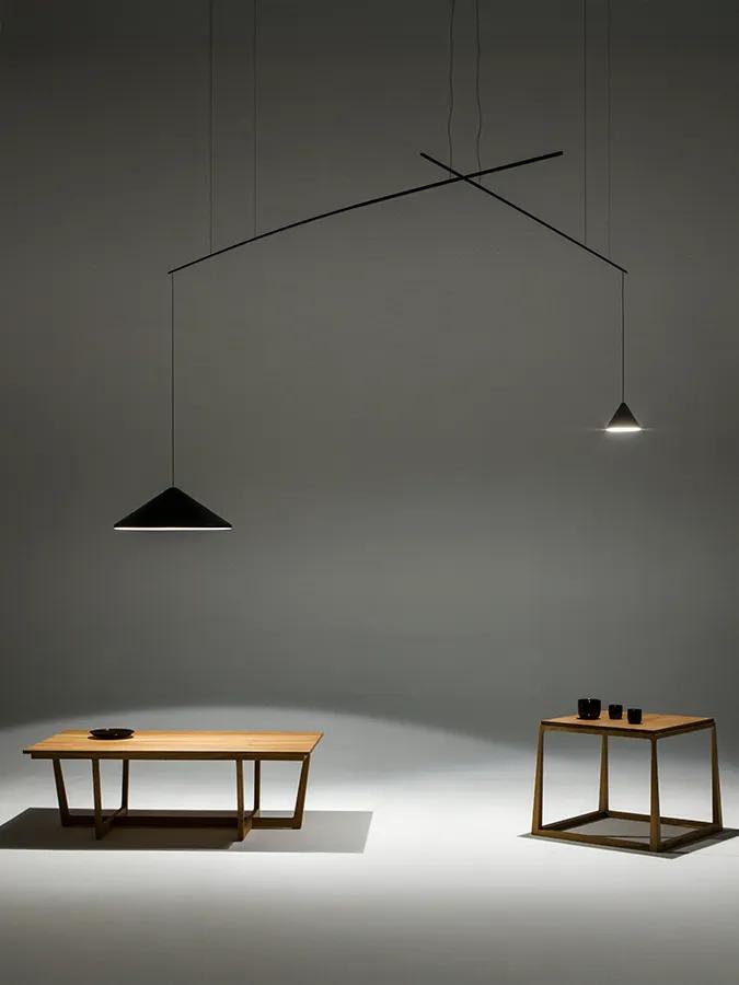 Like a line drawn in the air, North introduces a subtle presence that casts a precise, enveloping light. A suspended geometry that gently organises the space—delimiting, connecting and bringing rhythm to architecture without imposing itself.