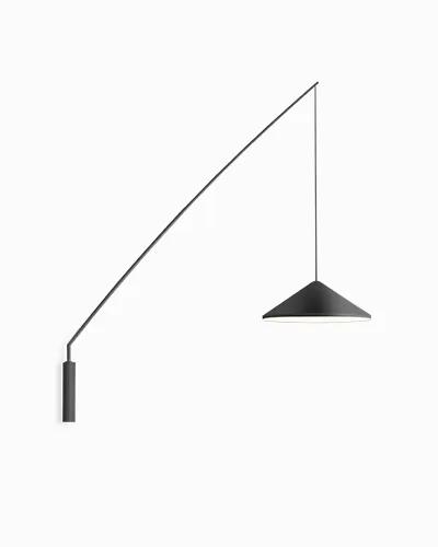 The arm and the shade are visually disconnected, joined only by near-invisible cables in a dynamic system of adjustable elements—a poetic and functional exercise in deconstruction that recreates a floating effect.