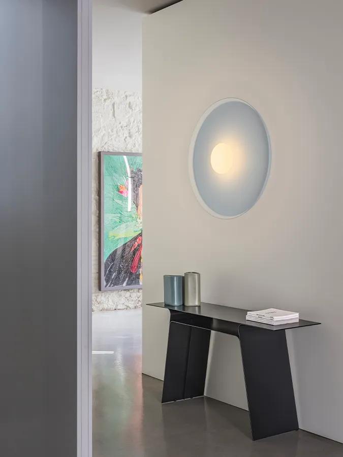 The Top sconce wall emanates with a soft, ambient light, welcoming the user with comfort and bringing a sophisticated atmosphere to any interior.